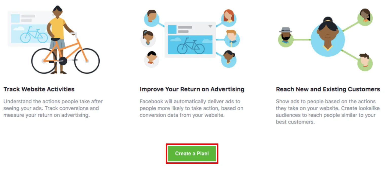 Selain itu kamu juga harus mempunyai website terlebih dulu. Sekarang saatnya untuk membuat Piksel Facebook Anda dan membuatnya bekerja di situs web Anda. Setelah mengklik ikon tersebut maka akan ada sebuah pop-up window yang menampilkan keuntungan menggunakan Facebook Pixel.